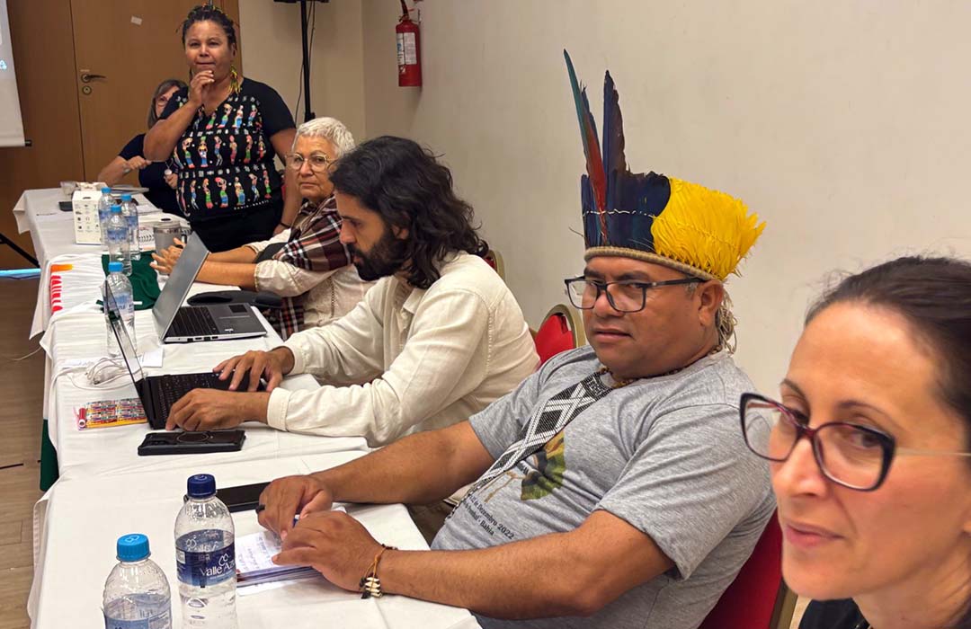 Sueli Barrios, coordenadora da Comissão Intersetorial de Educação Permanente para o Controle Social do SUS (CIEPCSS), do Conselho Nacional de Saúde (CNS), juntamente com Valdevir Both, coordenador executivo do Centro de Educação e Assessoramento Popular – Ceap, fizeram o acolhimento da equipe de educadoras e educadores populares que realizarão as Oficinas de Formação para o Controle Social no SUS na próxima edição do Participa+.