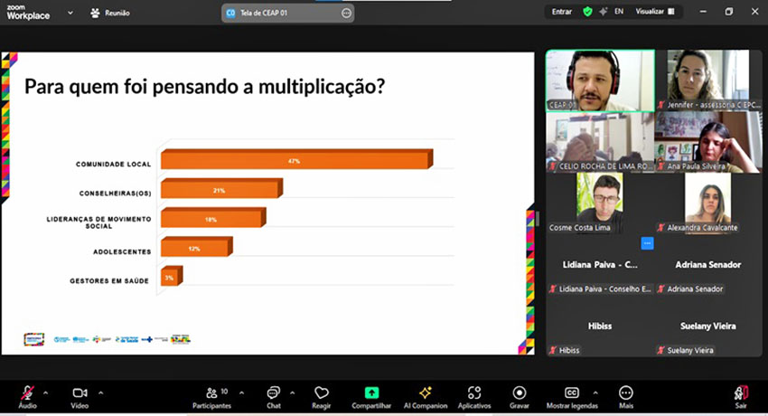 De acordo com o educador popular do Ceap, Jorge Gimenez, as visitas virtuais tinham o objetivo de conhecer o andamento do planejamento das Comissões Estaduais de Educação Permanente. “As visitas virtuais são importantes para o monitoramento do planejamento que as Comissões de Educação Permanente dos estados executaram neste ano, pois este plano foi elaborado em 2023, no curso de Formação de Formadores do Projeto Participa+”, explicou.